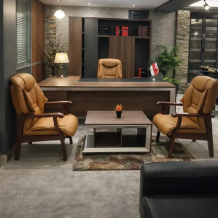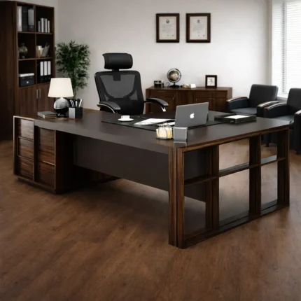 أضف لمسة من الفخامة والرقي إلى مكتبك مع مكتب المدير التنفيذي عالي الجودة بتصميم عصري على شكل حرف L. صُمم هذا المكتب ليجمع بين العملية والأناقة، ويوفر لك مساحة عمل واسعة وتنظيماً مثالياً لكل احتياجاتك اليومية. استمتع بتجربة عمل مريحة واحترافية مع أفضل خامات التصنيع والتشطيبات المتقنة.