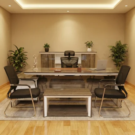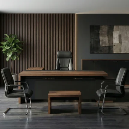 مكتب مدير تنفيذي عالي الجودة بشكل حرف L – تصميم عصري فاخر