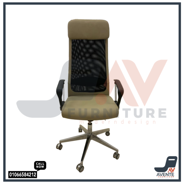 4. **قاعدة نجمية من النيكل الكروم**: تضيف لمسة من الأناقة والمتانة للكرسي، مما يجعله قطعة مميزة في أي مكتب.